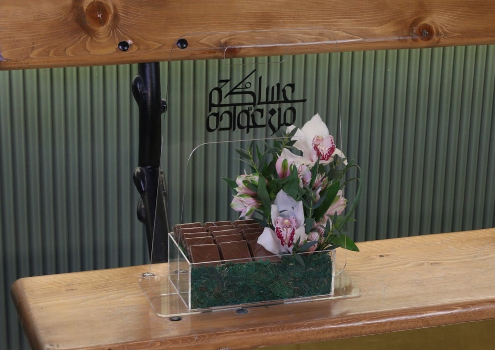 - رسالتك الخاصة: شارك مشاعرك الصادقة من خلال رسالة مكتوبة بخط اليد تضاف إلى صينية شفافة.