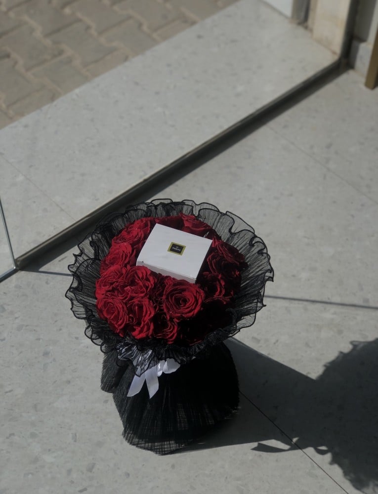 Make your occasions more special with a bouquet of roses with luxurious Patchi chocolate from Ajwan store. This bouquet combines the natural beauty of red roses with luxurious Patchi chocolate, making it an ideal gift to express your feelings in a sophisticated and luxurious style.
