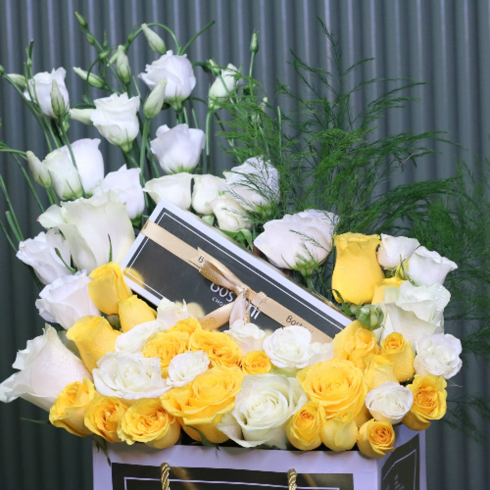 - Natural flowers: a lasting beautiful addition to enhance the elegance of the gift, yellow and white roses.